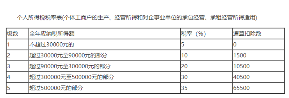 為了看起來直觀,我將經(jīng)營所得個稅稅率表放在下面,如圖: