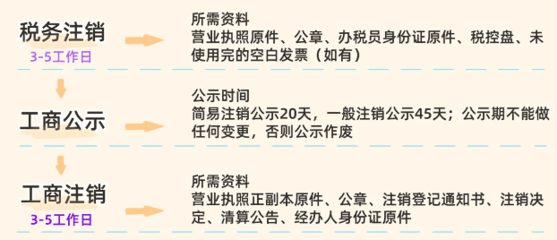 | 簡易注銷 | 無經營、無異常 | 20天 | ≈1個月 | 800~1500元 |